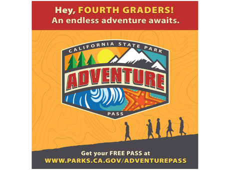 - Adventure Pass Program – Provides free day-use access for fourth graders and their families to 54 select parks throughout the state. Every student in grade 4 in San Diego County can explore the rich natural heritage in their own backyard at Silver Strand State Beach, Cuyamaca Rancho State Park, and Anza Borrego Desert State Park or venture out to any of the other participating parks. View the educator guide for this program. The pass is valid for current fourth graders until August 31.