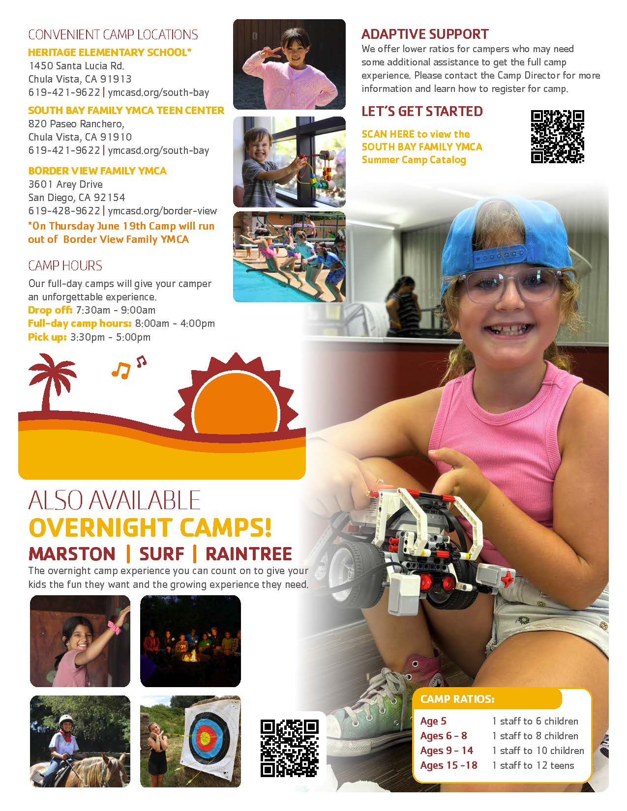 Your family can count on South Bay Family YMCA to ensure your child is having fun in a safe, nurturing environment. The Y offers single-day, weekly and specialty camps to meet the needs of parents and match the interests of our campers.