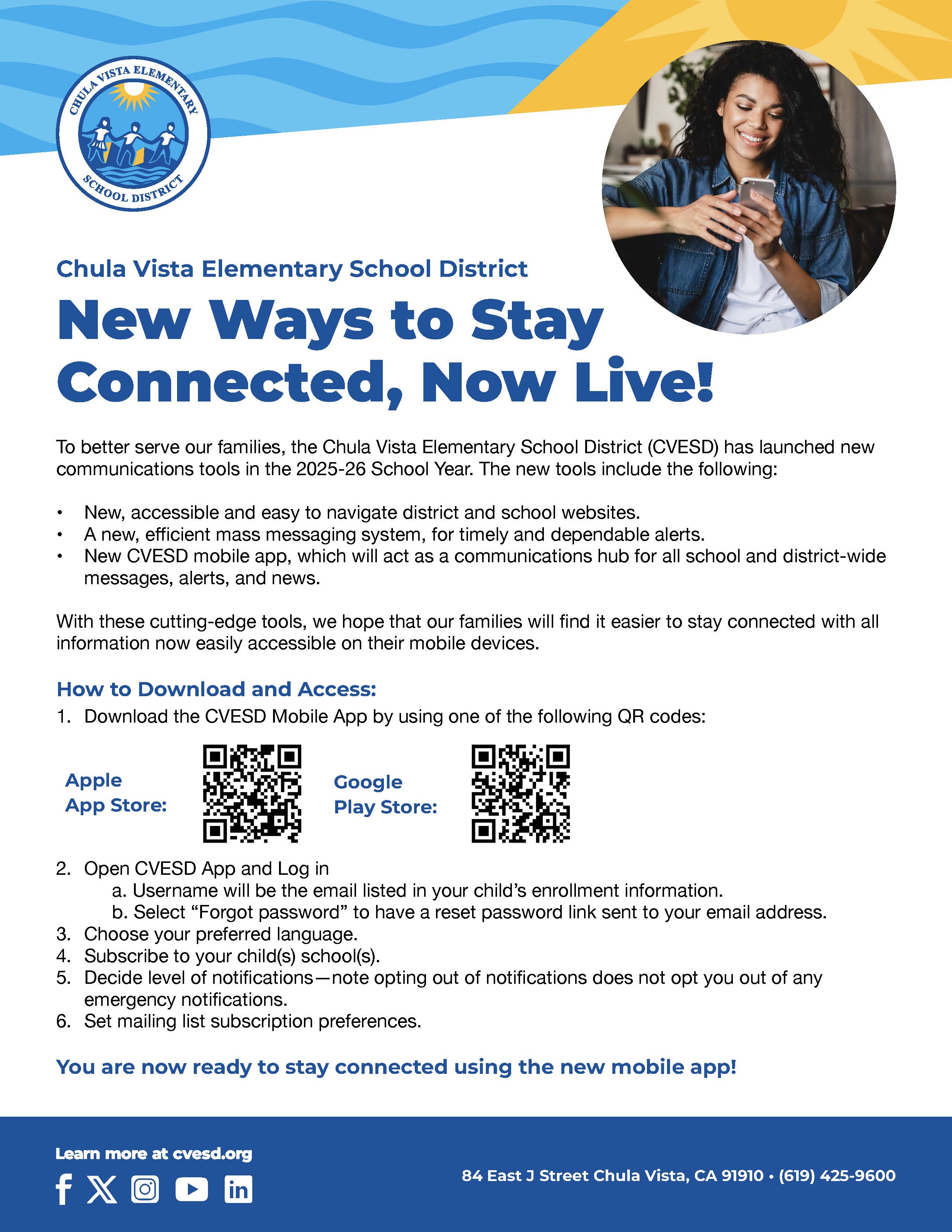 The Chula Vista Elementary School District will notify families on Monday, August 4th that their child’s individual CAASPP scores from 2024-25 school year are available in the Home Access Center (HAC). CVESD utilizes the HAC to share SSRs for the California Assessment of Student Performance and Progress (CAASPP) and English Learner Proficiency Assessments for California (ELPAC) with parents and guardians. The HAC allows parents and guardians to securely review, download, and save student results quickly and conveniently. The notification will include directions on how families can view the results on HAC. Please click on the link below to view instructions on how to login to the Home Access Center.