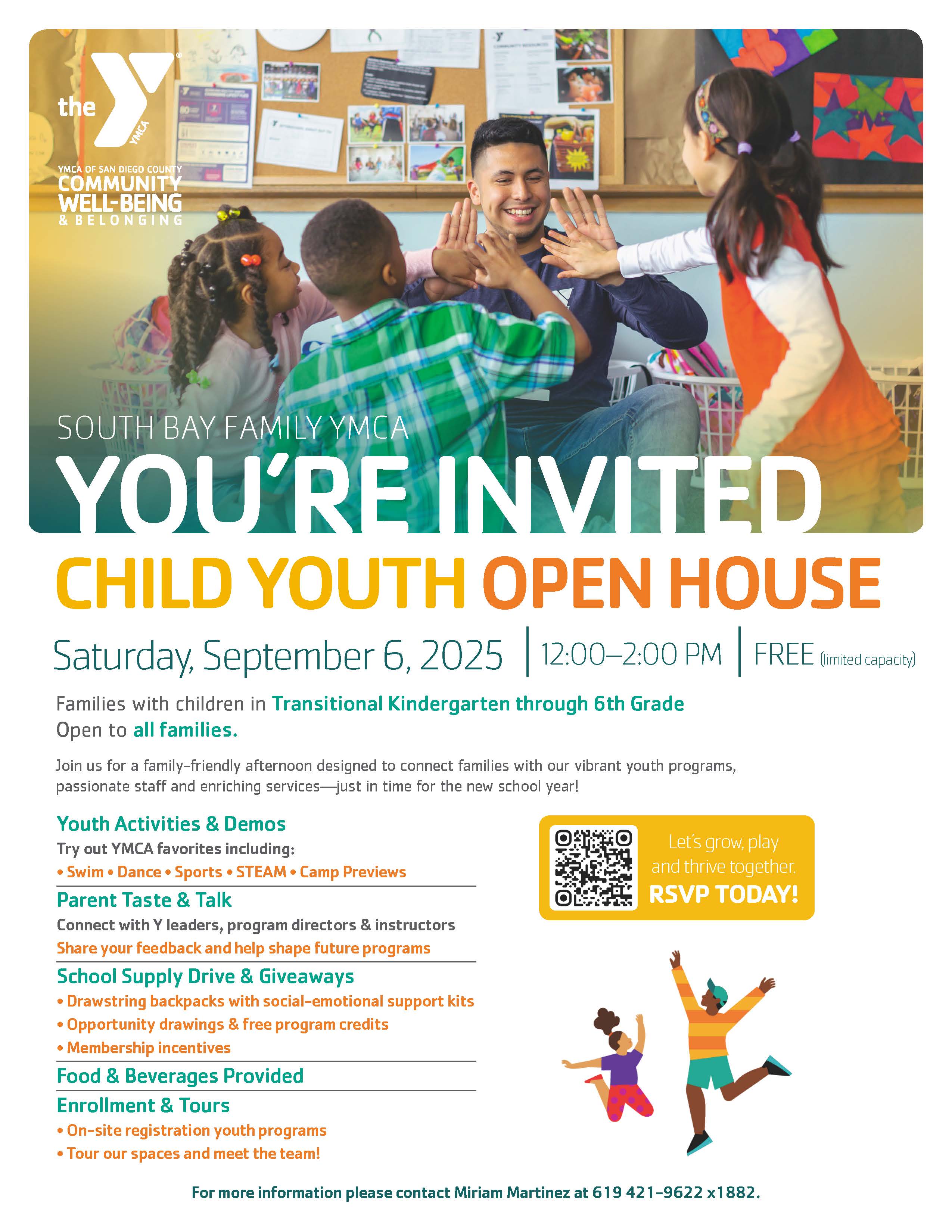 We’d love for you to stop by our upcoming Open House at our Southbay Family YMCA branch. This is a great time to check out all the programs and services the YMCA offers. There will be activities, info booths, and fun for the whole family!