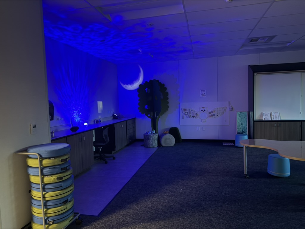This past week, our school community gathered to celebrate the ribbon cutting of our new sensory room, the Zen Den, a dedicated space created to support student well-being, focus, and self-regulation. Students, staff, and families joined us in recognizing this important addition to our campus and what it represents for our learners. The Zen Den provides a calm, supportive environment where students can reset, regulate emotions, and refocus before returning to class ready to learn. Designed with intention, the space includes calming lighting, sensory tools, and movement supports to help students feel grounded and empowered. It reflects our commitment to inclusion and belief that learning is not one-size-fits-all and that supporting the whole child is essential to academic success. We are grateful to the staff, families, and partners, including our Special Education Parent Advisory Committee, who helped bring this vision to life, and we look forward to the positive impact the Zen Den will have on our students throughout the year.