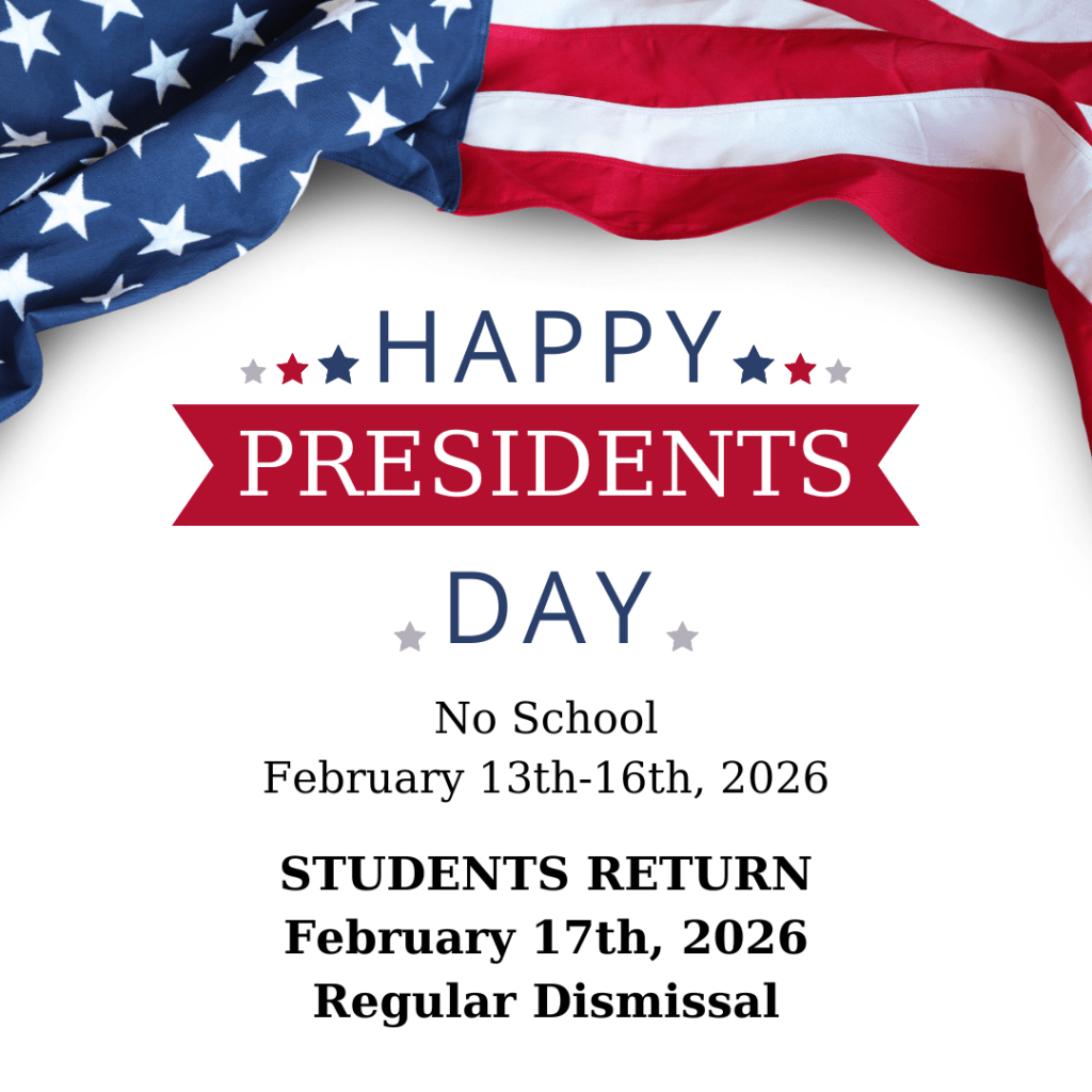 We hope everyone enjoyed the four day weekend for Presidents’ Day! Students will be returning on Tuesday, February 17th, for a full day of learning with regular dismissal times.
